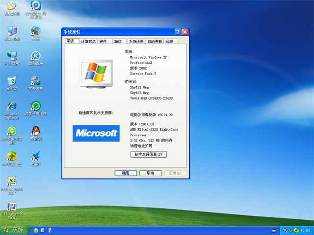 * 办公套件采用的是精简版Office2007,集成Office补丁至2014.09.03(可通过微软漏洞扫描和卫士漏洞扫描)