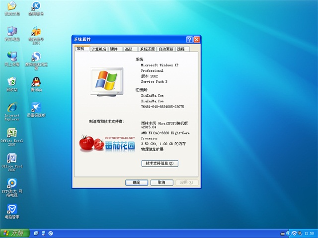 番茄花园 Ghost XP SP3 海量驱动版 2015年5月