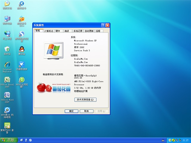 番茄花园 GHOST XP SP3 海量驱动版 V2015.08