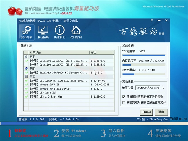 * 安装过程会运行驱动选择工具,此工具可智能判断所有的电脑硬件型号,最大限度地避免了因驱动冲突而蓝屏的现象。