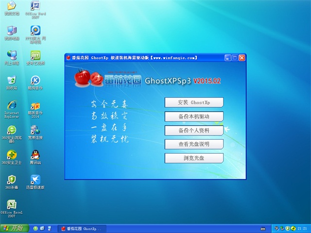 番茄花园 Ghost XP SP3 极速装机海量驱动版 v2015.02