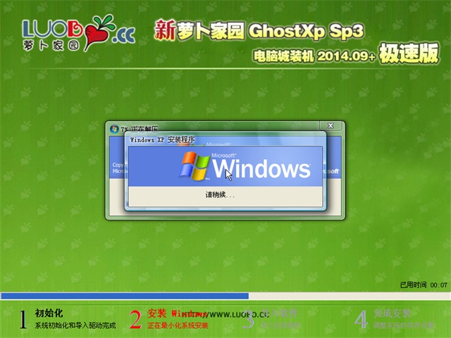 * 安装过程中可听听歌、玩玩小游戏、设置系统属性、查看设备管理器等功能(此功能为萝卜家园首创)。