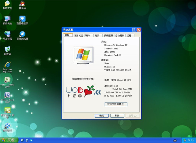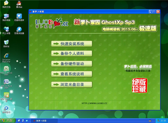 * 办公套件采用的是精简版Office2007,包含常用三大组件