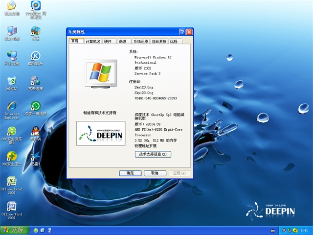 深度技术 GHOSTXPSP3 电脑城万能装机版 v2014.09