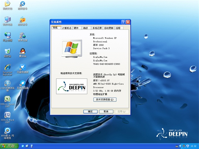 深度技术 GHOSTXPSP3 电脑城万能装机版 v2015.07