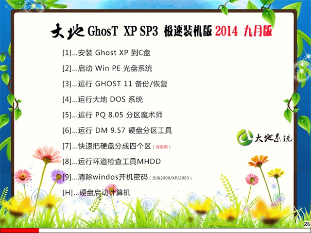 此版本沿用了大地 GHOST 特点,稳定,迅速,恢复速度快,软件已按照用户使用习惯作细心设置,驱动支持较新且全面,系统干净无毒,在前几个版本的基础上作了重大改善,相信一定能带给你惊喜。其他下载站不敢保证系统的安全性。