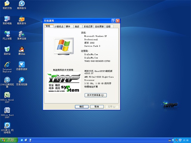 * 办公套件采用的是精简版Office2007,含Excel、Word、PowerPoint 三大常用组件。