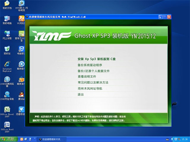 雨林木风 GHOST XP SP3 装机版 V2015.12
