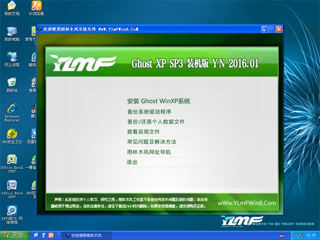 请各用户放心使用雨林木风 GHOST XP SP3 装机版 V2016.01。