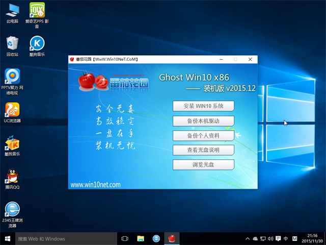 番茄花园 Ghost Win10 TH2 32位 装机版 2015.12