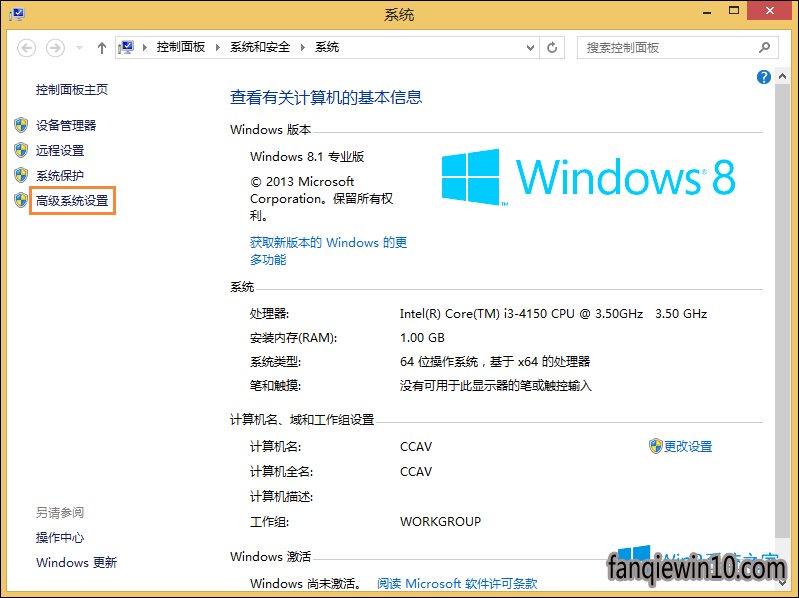 2、然后打开左侧的“高级系统设置”,在系统出现的属性窗口上面,大家把它切换到“计算机名”标签页,打开“更改”按钮。