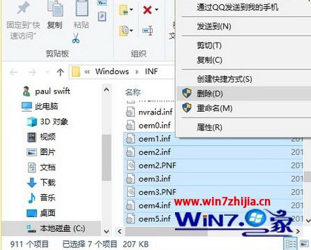 第五步、在跳出后的文件夹保留“oem0”和“oem0.pnf”文件,将其他所有以“oem”开头的文件全部删除;