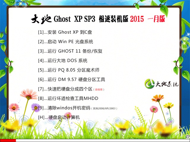 《大地 GHOST XP SP3 极速装机 2015.01月版》
