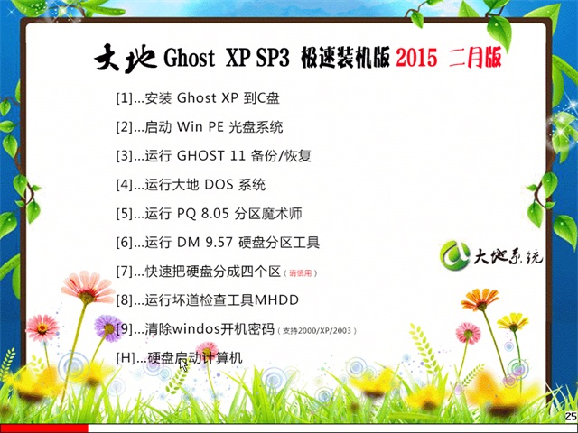 《大地 GHOST XP SP3 极速装机 2015.02月版》