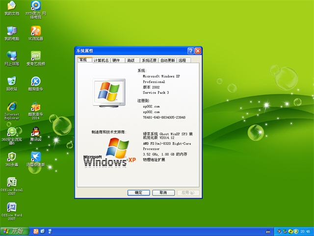 绿茶系统 GHOST XP SP3 装机优化版2014年12月版